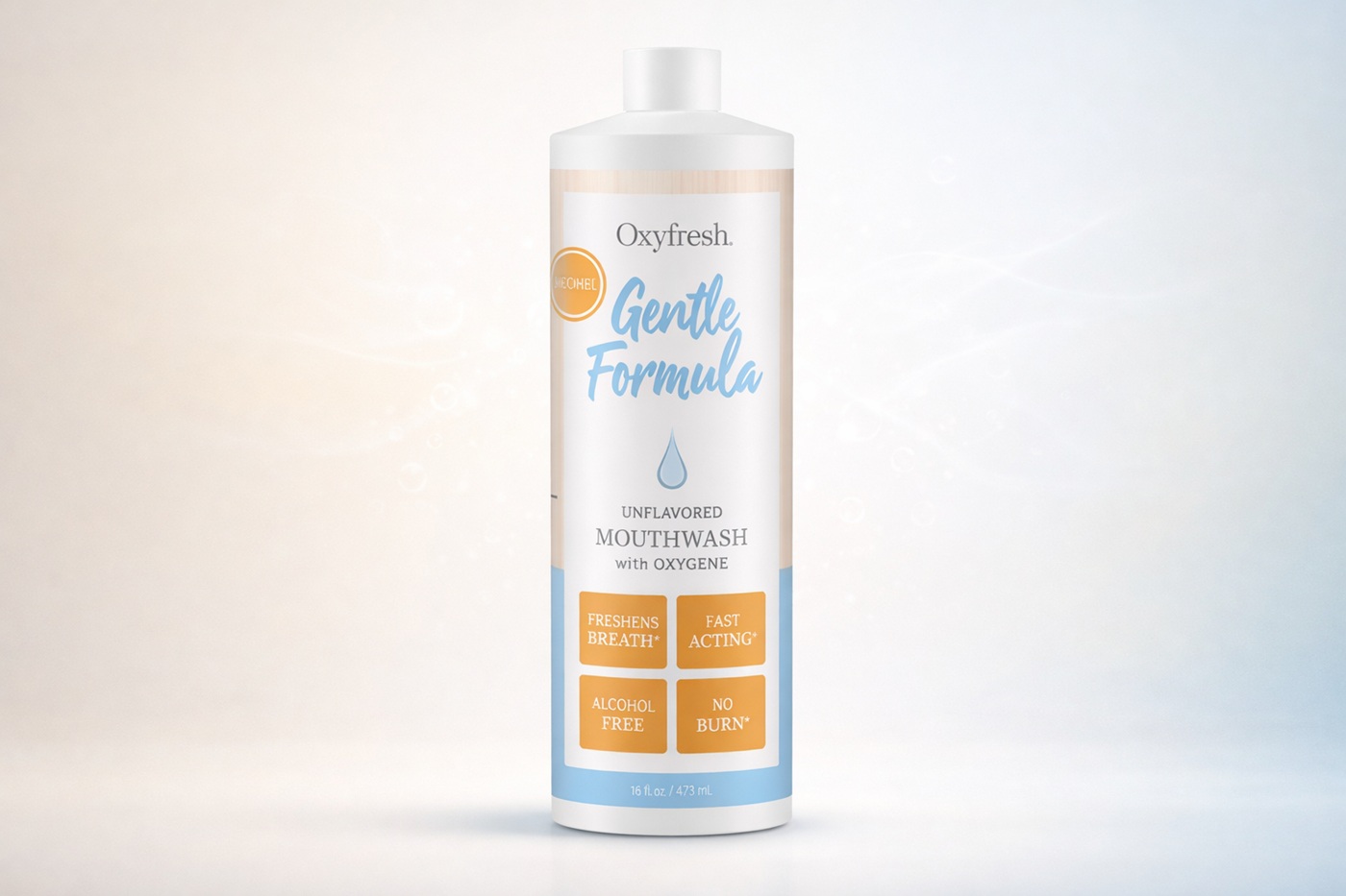 Oxyfresh Unflavored mondwater is smaakvrij en alcoholvrij en werkt op basis van actieve zuurstof (gestabiliseerde chloordioxide). Actieve zuurstof helpt geurveroorzakende stoffen te neutraliseren, zonder ze te maskeren met smaak.